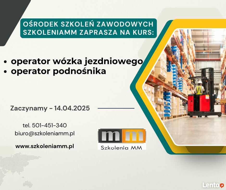 Ośrodek Szkoleń Zawodowych SzkoleniaMM zaprasza na szkolenie operatora:- wózka jezdniowego